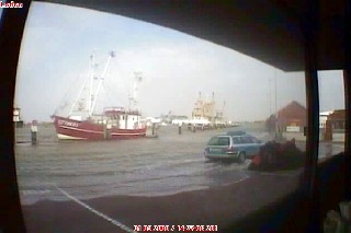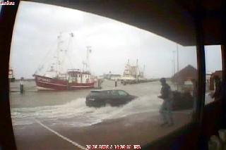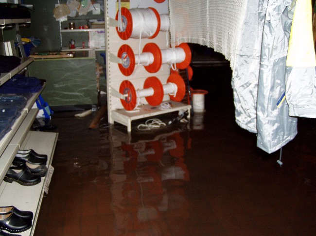 04.04.2008 Dieses Bild, entstanden bei der Sturmflut am 01.11.2006, möchte ich noch nachreichen. Dies war bereits ablaufendes Wasser und immer noch knöcheltief! An diesem Tag dachte ich, das war's mit unser Schiffsausrüstung.... Nach einigen tausend Euro Schaden ging es aber doch wieder weiter.